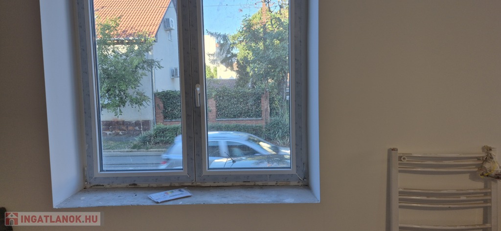 Melyen két oldalról ablakok, középen az üvegezett ajtó van.Ragyogóan napozott, szép kilátassal.Lépcsővel az utcáról.