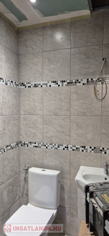 A tusoló, WC egy helyiségben találhatóm igényes kivitelben.